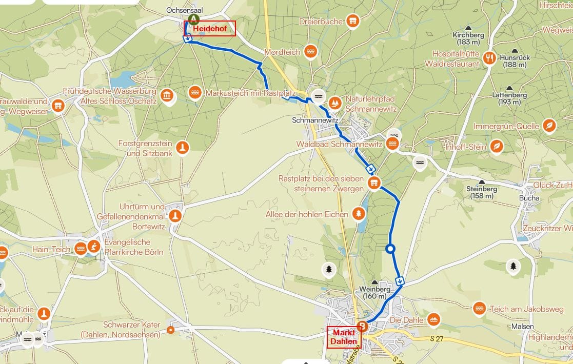 Das Seebad Schildau liegt ca 9 km nördlich von Ochsensaal. Es ist über Waldwege gut mit dem Fahrrad oder über die Landstraße mit dem PKW zu erreichen.